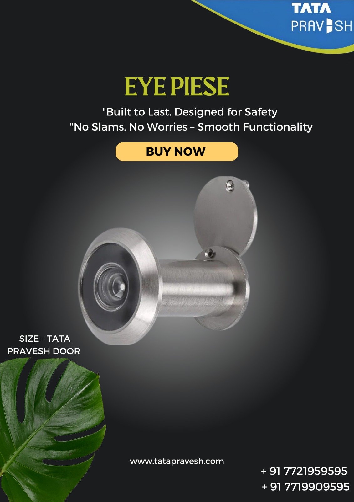 The Tata Pravesh Eye Piece offers clear outside visibility while ensuring privacy and security. Made with high-quality materials, it seamlessly integrates with Tata Pravesh doors, adding both functionality and a sleek finish to your entrance. Durable, rust-resistant, and easy to install.
